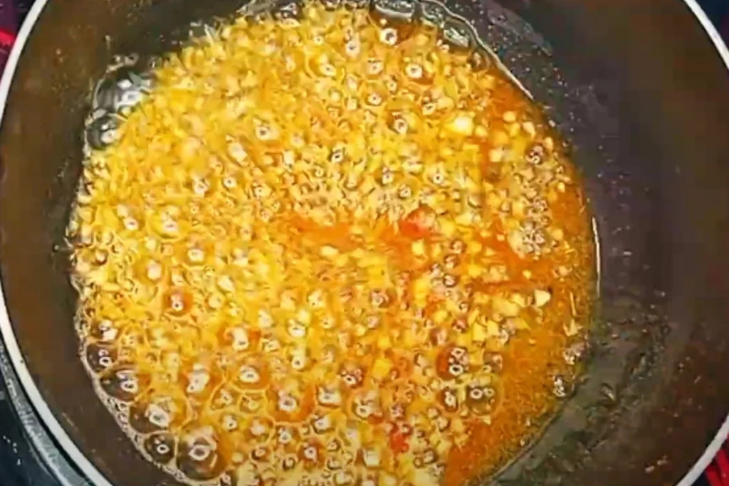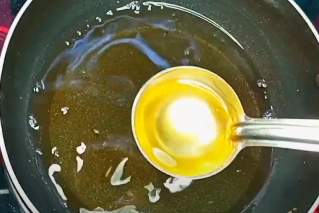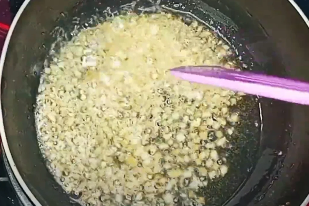 - Add 1 tablespoon of turmeric powder and sauté for 1 minute on very low heat.