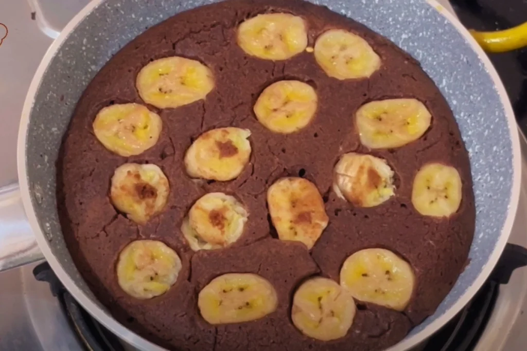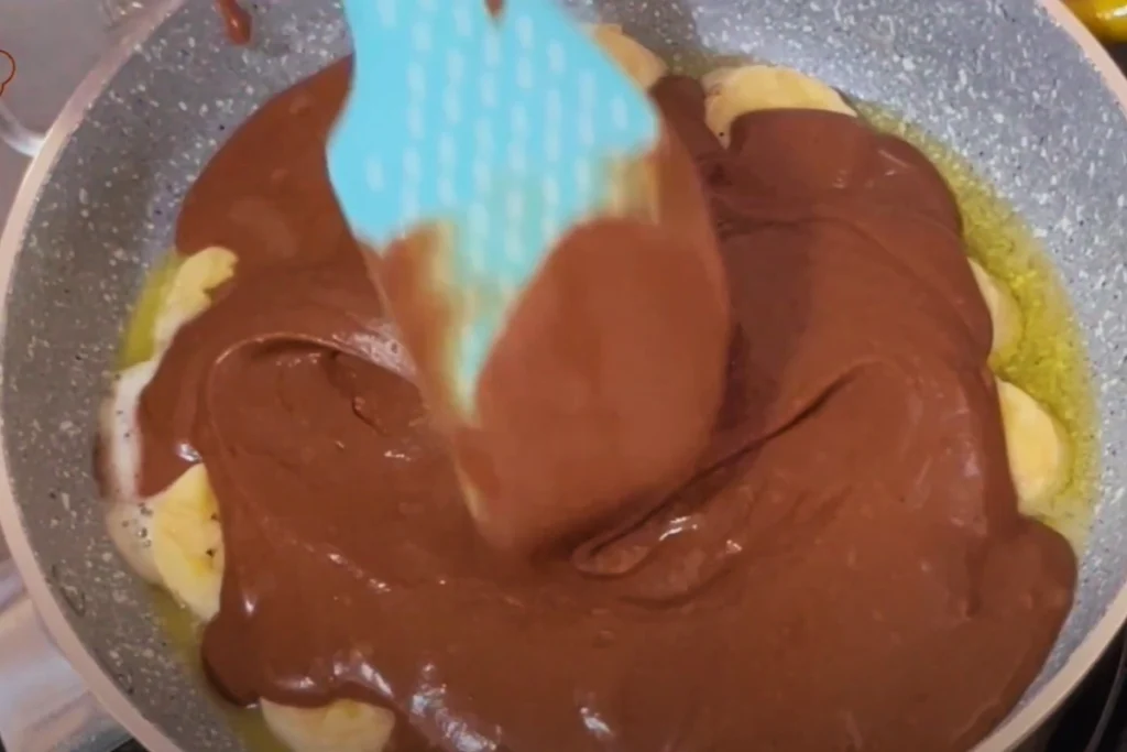 Fry the banana slices in 1 tablespoon of butter for one minute, then pour the batter over them. Cover and cook on low flame for 15 minutes.